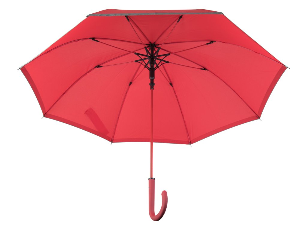 Automatický, větruodolný deštník s 8 panely, reflexním lemováním, pogumovaným držadlem, barevnou tyčí a stejně barevnou konstrukcí ze skelných vláken, 190 T pongee. ...