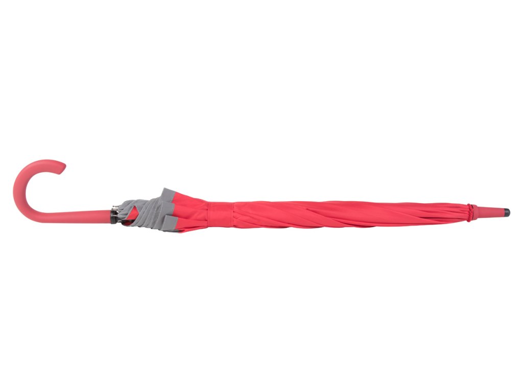 Automatický, větruodolný deštník s 8 panely, reflexním lemováním, pogumovaným držadlem, barevnou tyčí a stejně barevnou konstrukcí ze skelných vláken, 190 T pongee.
