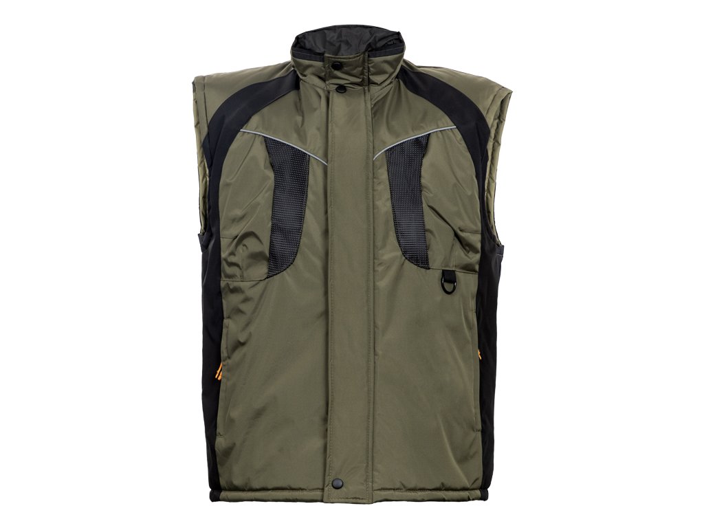 Zateplená nepromokavá pánská zimní vesta se stojáčkem; mechanicky odolná úprava RipStop; zapínání na zip kryté légou; spodní lem ke stažení na šňůrku; 2 postranní kapsy, 2 náprsní kapsy; reflexní doplňky.