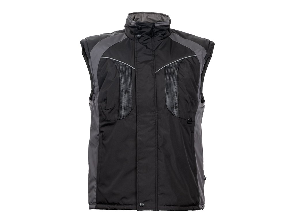 Zateplená nepromokavá pánská zimní vesta se stojáčkem; mechanicky odolná úprava RipStop; zapínání na zip kryté légou; spodní lem ke stažení na šňůrku; 2 postranní kapsy, 2 náprsní kapsy; reflexní doplňky.