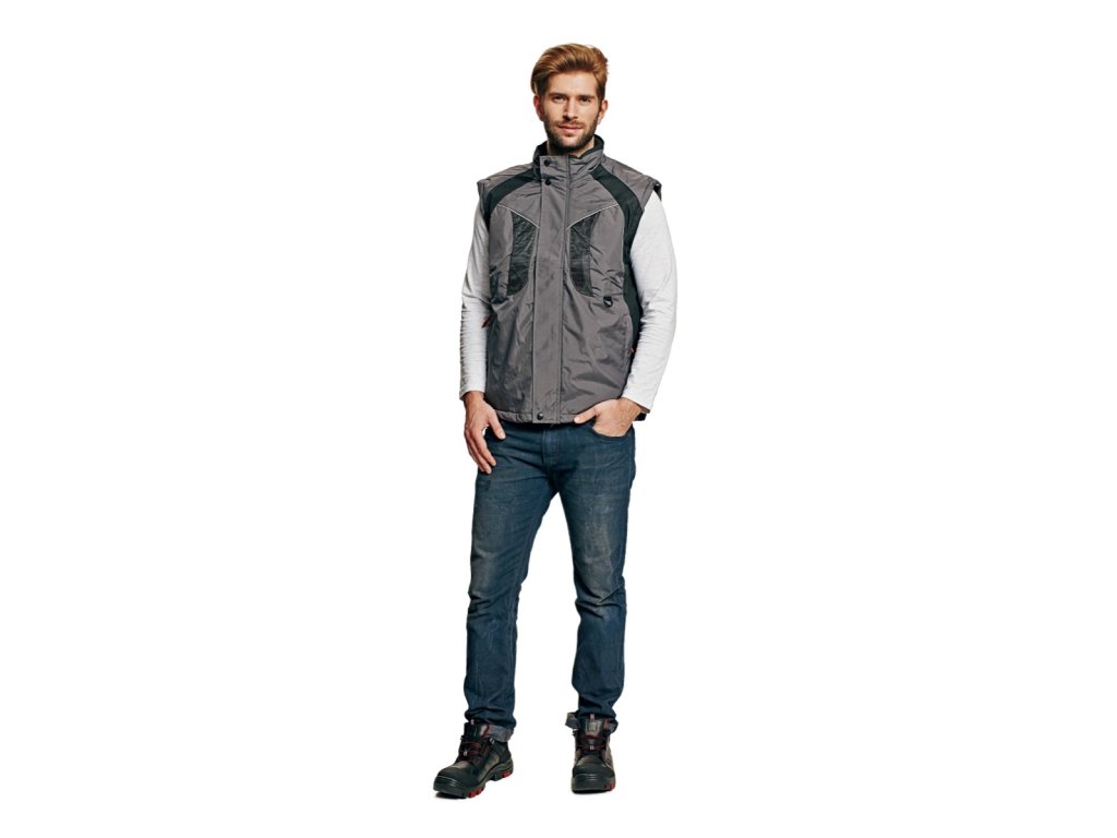 Zateplená nepromokavá pánská zimní vesta se stojáčkem; mechanicky odolná úprava RipStop; zapínání na zip kryté légou; spodní lem ke stažení na šňůrku; 2 postranní kapsy, 2 náprsní kapsy; reflexní doplňky.