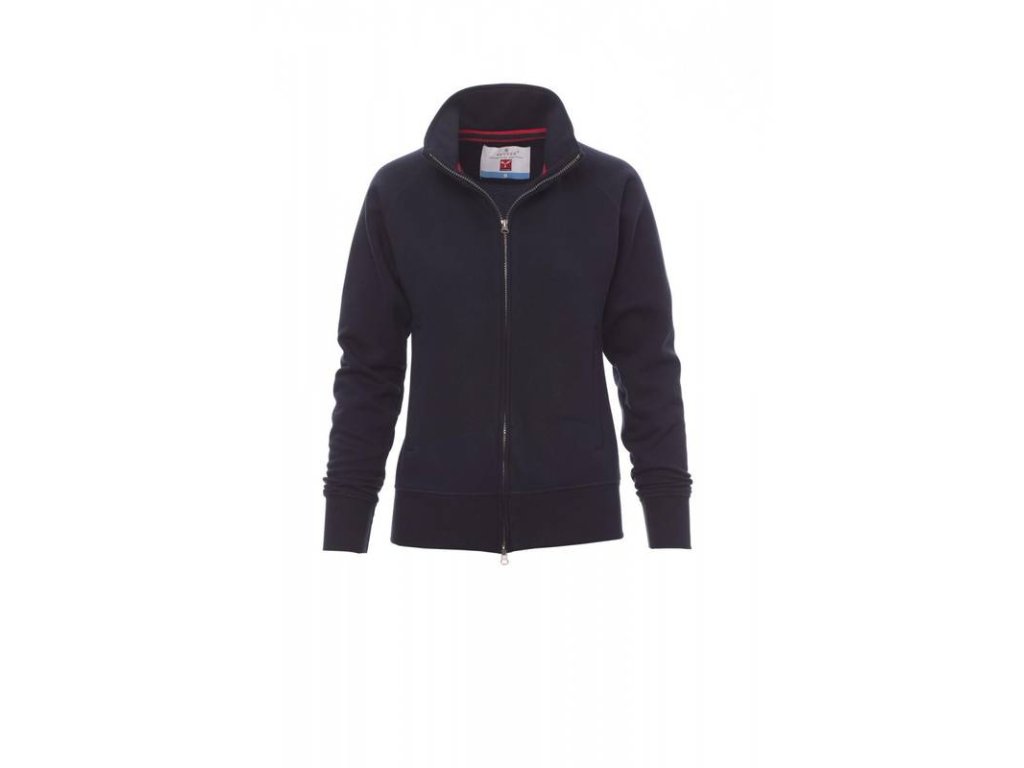 Dámská mikina , SBS plastem skrytým zipem s dvojitým kovovým stažením, raglánovými rukávy, dvěma kapsami se skrytými zipy, strečovými manžetami a lemem, vyztuženými švy.