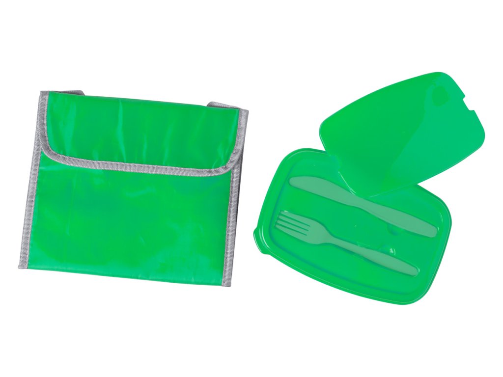 Polyesterový chladící taška s hliníkovou podšívkou a barevně odpovídající plastovou krabičkou, 1000 ml. Vyrobeno z polyesteru 600D.