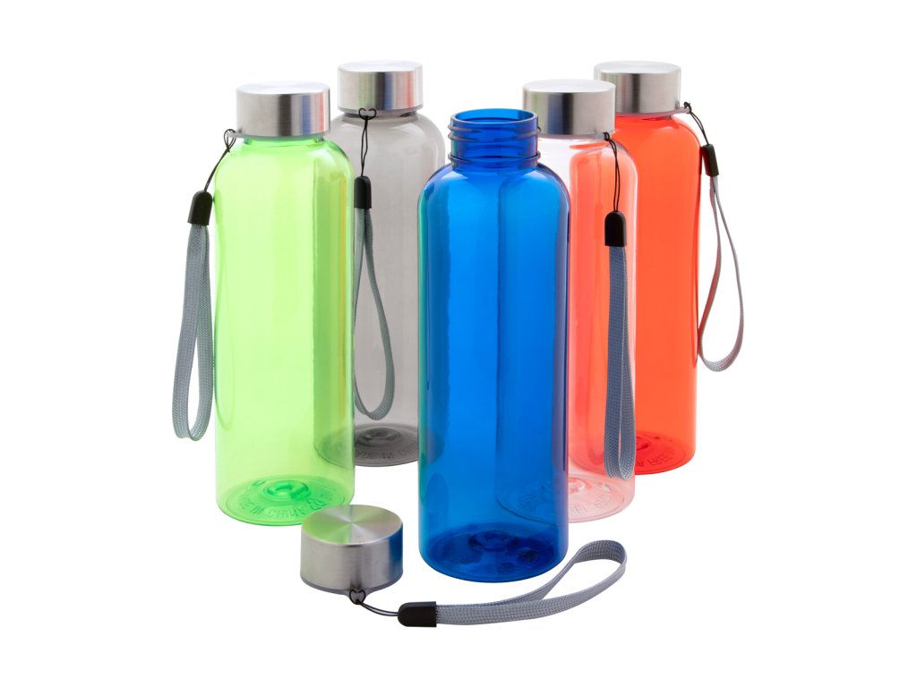 Sportovní láhev z plastu RPET bez BPA s víčkem z nerezové oceli a popruhem, 500 ml. Nevhodné pro sycené nápoje. ...