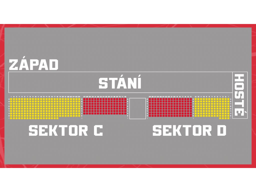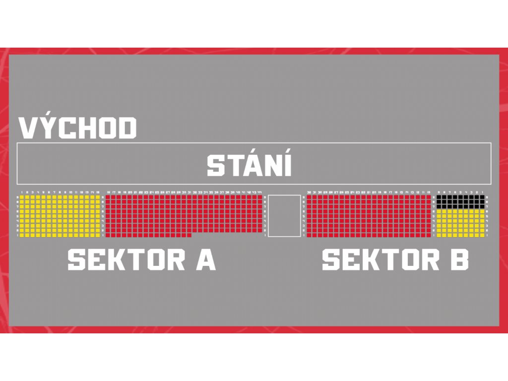 Místo si můžete rezervovat z těchto míst mimo políček vyznačených černou barvou. Místo budete mít poté vytisknuto přímo na permanentce a na sedadlech budete mít označenou rezervaci. Všechny místa budou přenositelná do další sezóny. Nárok na rezervaci bude zohledněn podle časové posloupnosti objednávek.