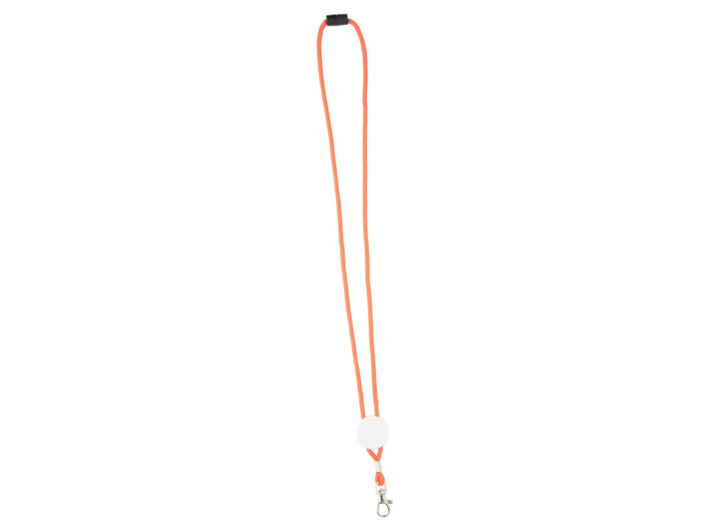 Polyesterový lanyard s kovovou karabinkou, bezpečnostní přezkou a kulatým plastovým štítkem. Ideální pro epoxy potisk.