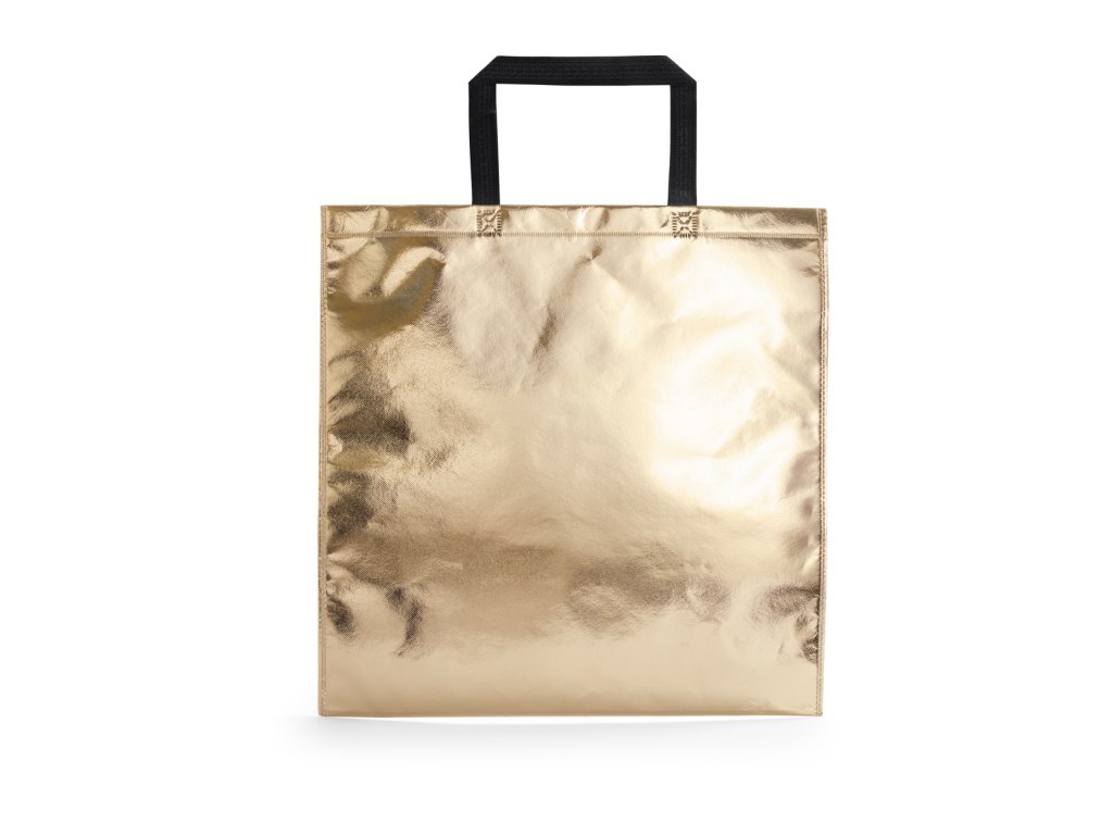 Polaminovaná nákupní taška z netkané textilie v metalické barvě, se středně dlouhými uchy.
