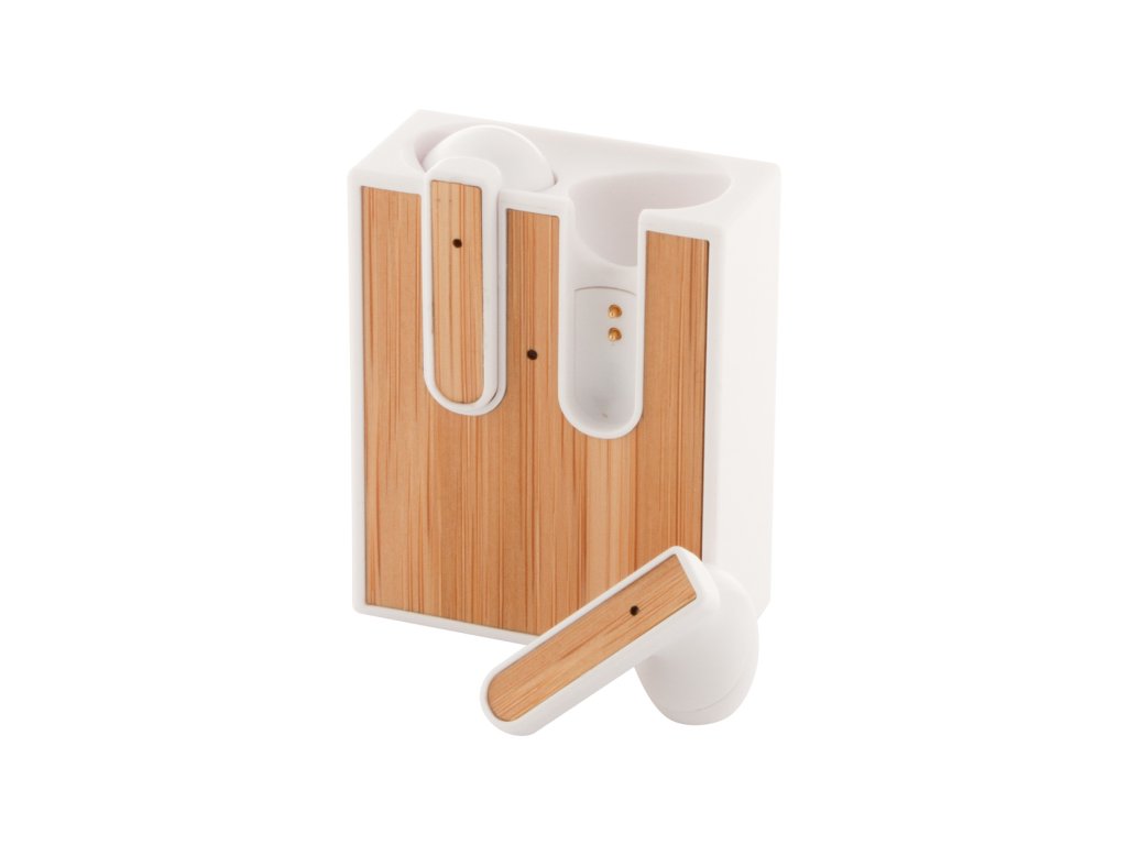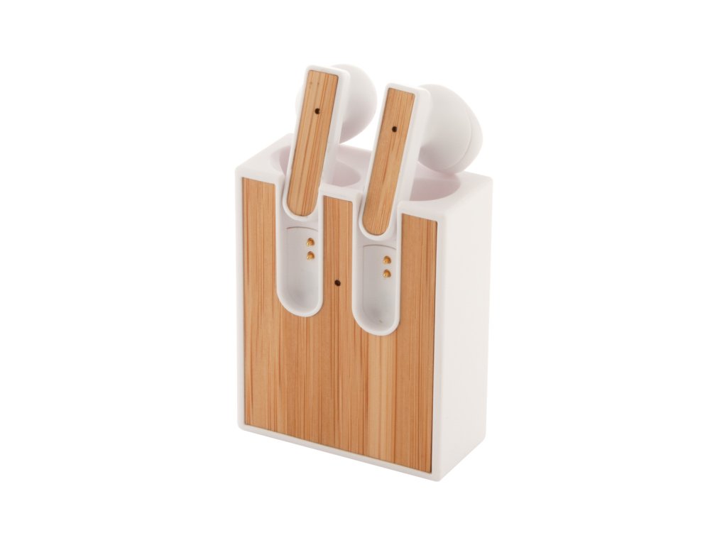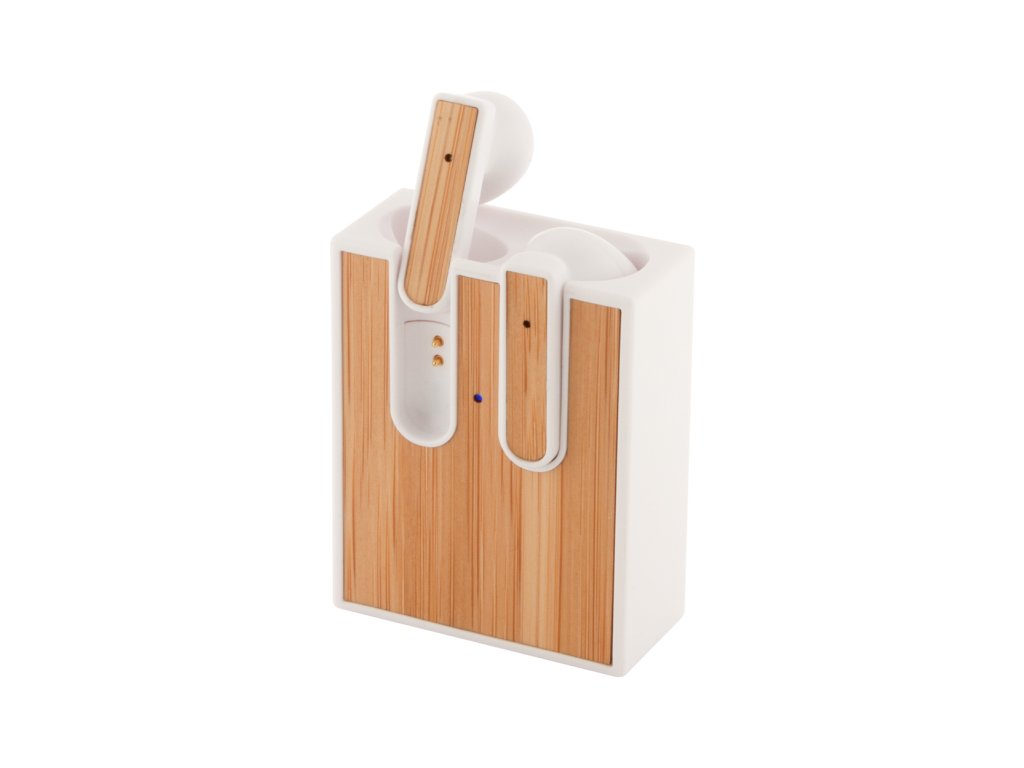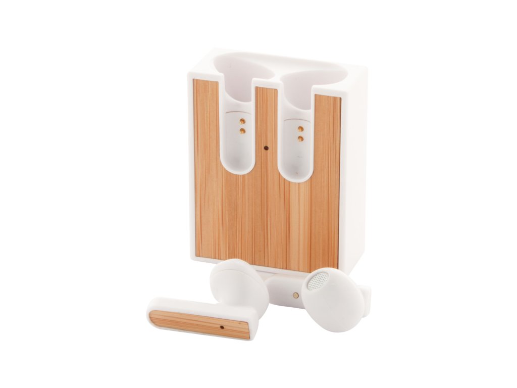 Bezdrátová bluetooth sluchátka s bambusovou vložkou a funkcí hands-free volání. V nabíječce z recyklovaného ABS plastu s bambusovou vložkou. Včetně USB nabíjecího kabelu.