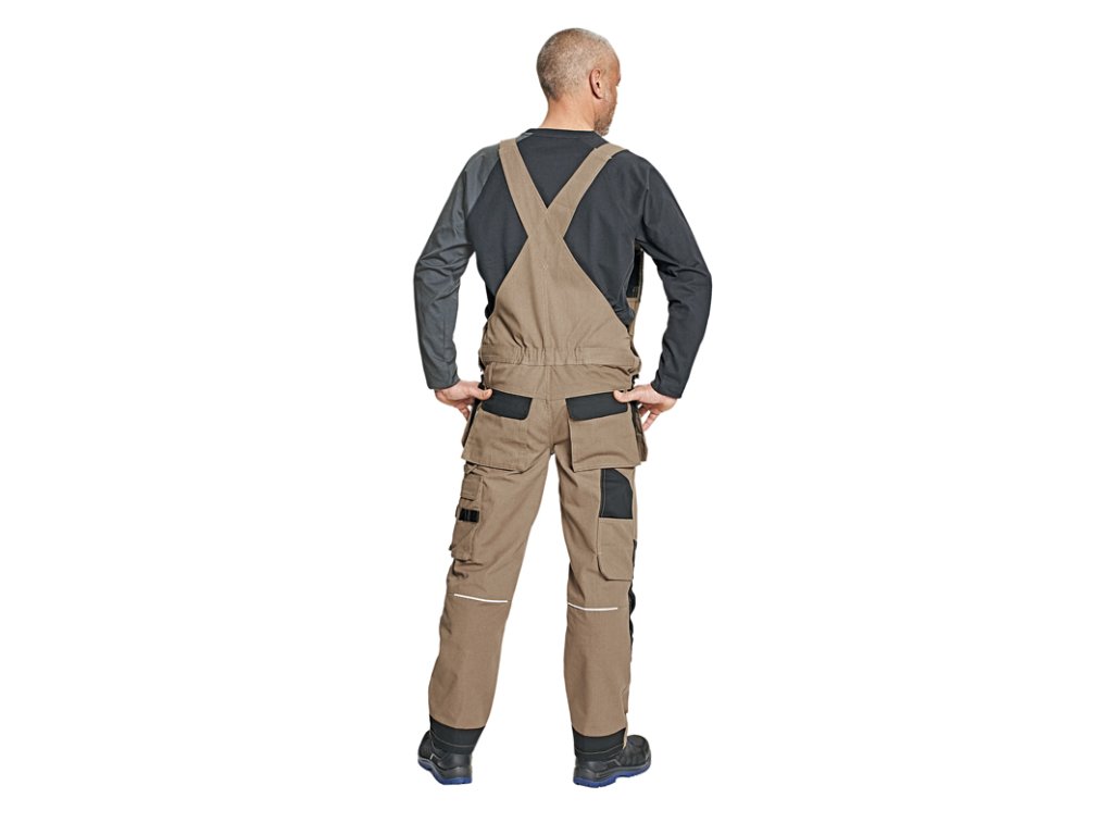 pánské pracovní kalhoty s laclem • 2 odnímatelné multifunkční kapsy na předním díle • prostorné spodní kapsy s možností vkládání odnímatelných kapes • 1 multifunkční kapsa na levé nohavici s poutkem na kladivo • 2 prostorné kapsy na nářadí na pravé nohavici • 2 nakládané zadní kapsy s patkou na suchý zip • zesílená část v oblasti kolen s možností vložení kolenních výztuh • 2 multifunkční náprsní kapsy • zapínání zip krytý légou na suchý zip • nastavitelná délka šlí • částečně elastický pas • boční možnost zapínání na jeansové knoflíky • zpevnění švů trojitým prošitím, znásobené prošití v namáhaných místech • upravitelná délka nohavic • reflektivní paspule v zadní části kolen