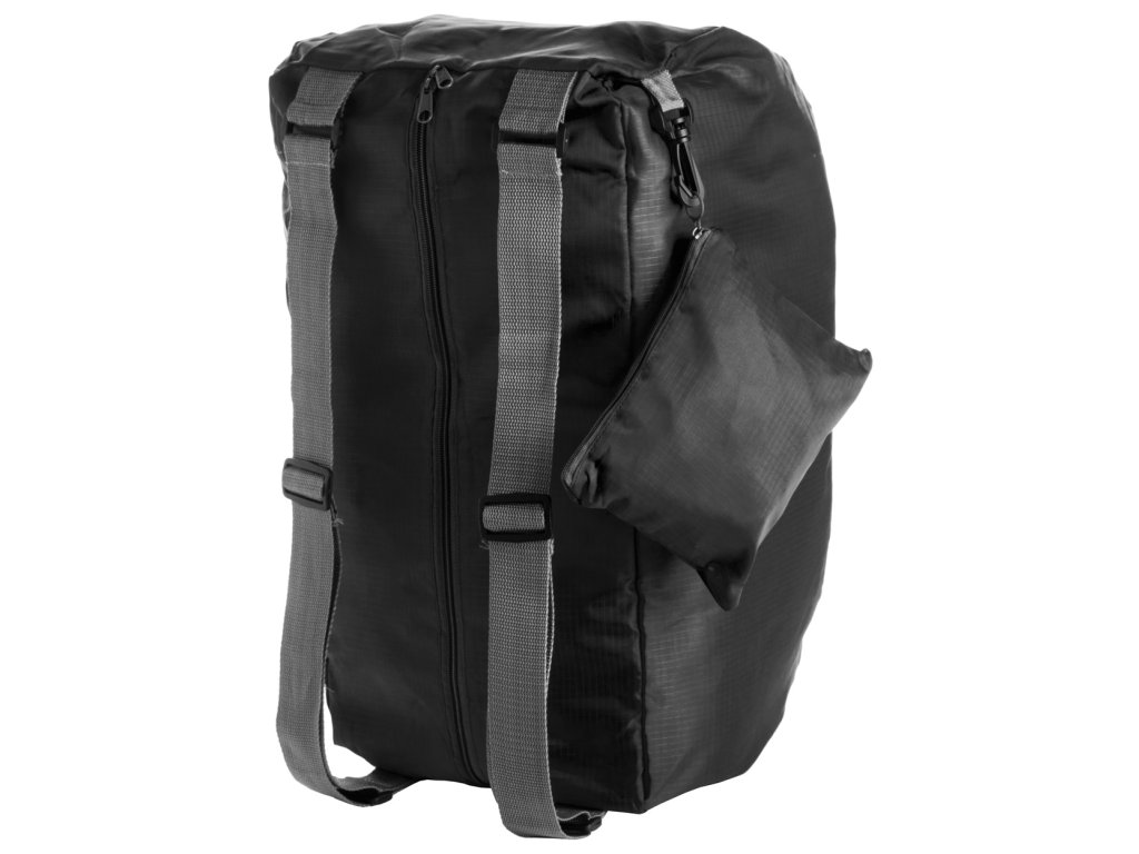 Skládací nylonová sportovní taška/batoh s nastavitelnými popruhy v barevném obalu.