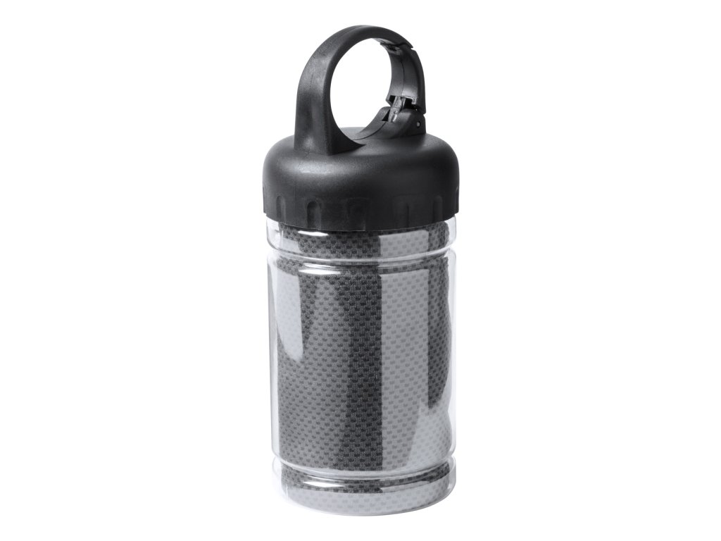 Polyesterový/nylonový sportovní ručník v plastovém držáku s karabinou, 160 gr / m².