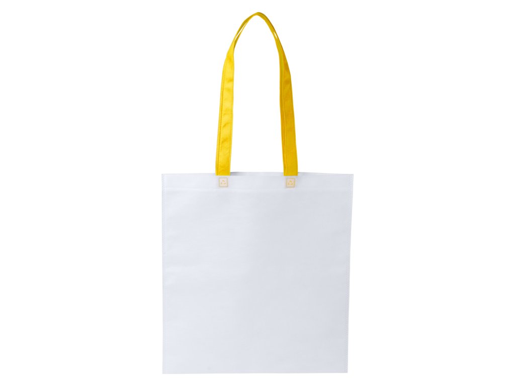 Nákupní taška z netkané textilie, bílá s barevnými dlouhými uchy,80 g/m². ...