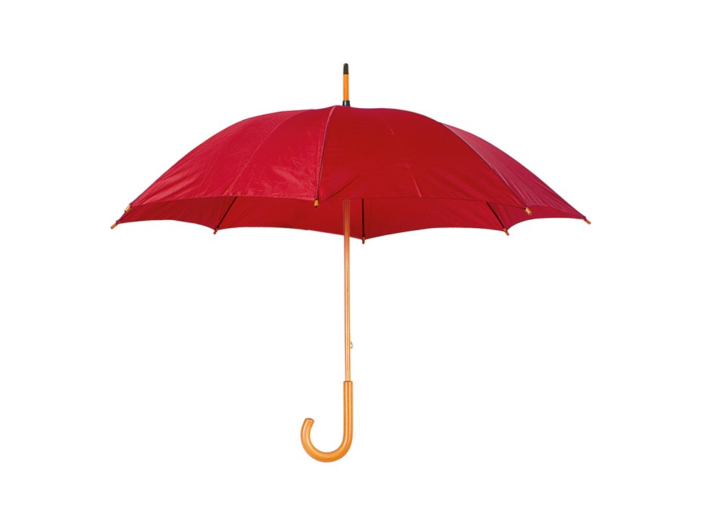 Manuální deštník s 8 panely a dřevěným držadlem.