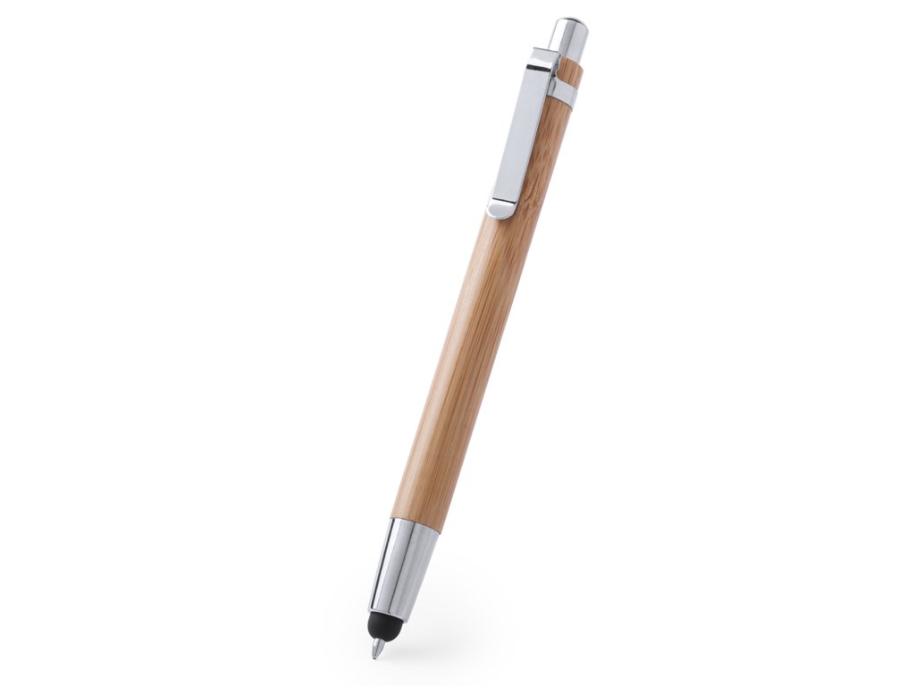 Bambusové kuličkové a dotykové pero s kovovým klipem a špičkou, s modrou náplní. ...