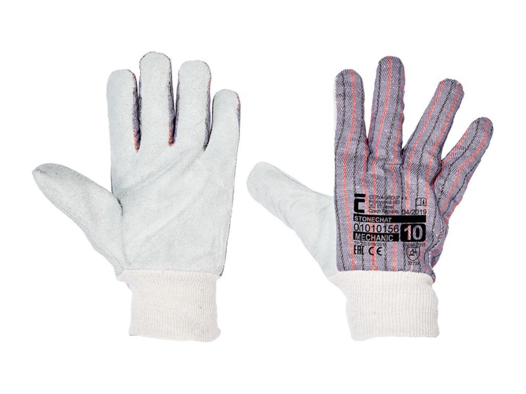 Rukavice z hovězí štípenky v dlani s podšívkou, hřbet a manžeta z tkaniny. Pružná manžeta