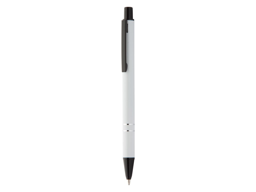 Hliníkové kuličkové pero s barevným tělem a modrou náplní.