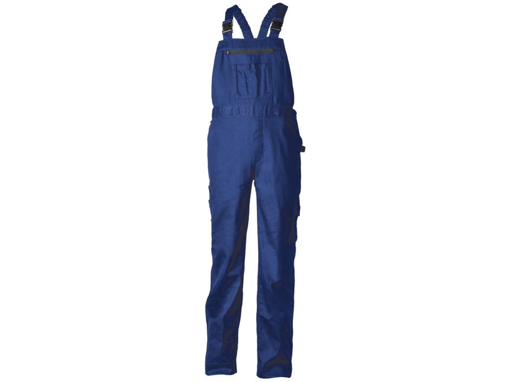 Praktické kalhoty s laclem rovného střihu vyrobené z odolného materiálu - 35% bavlny + 65% polyesteru, pletenéhé osnovy, vysokopevnostního a příjemného na tělo materiálu s gramáží 245 g/m2. Estetické, kontrastně zbarvené kryty kapes a záhybů. Nastavitelné elastické ramenní popruhy se zesílenými přezkami, elastický pas s bočními knoflíky. Dvě boční kapsy, jedna skládaná kapsa na stehně, tři kapsy na nářadí, dvě uzamykatelné zadní kapsy a jedna široká náprsní kapsa na zip s držáky na pera, tři popruhy na nářadí. Čtyři další držáky v pase, které lze dle potřeby použít k přidání dalších kapes nebo držáků na nářadí.