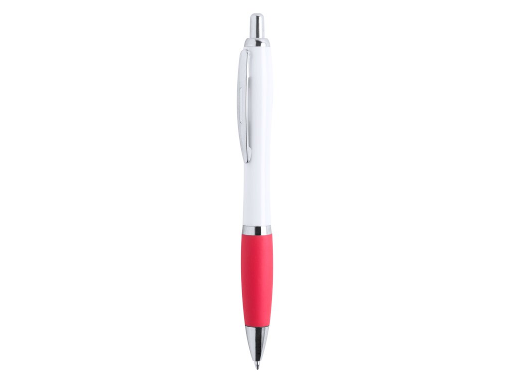 Plastové kuličkové pero s bílým tělem a barevným úchopem. ...
