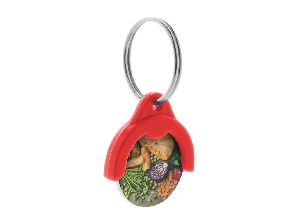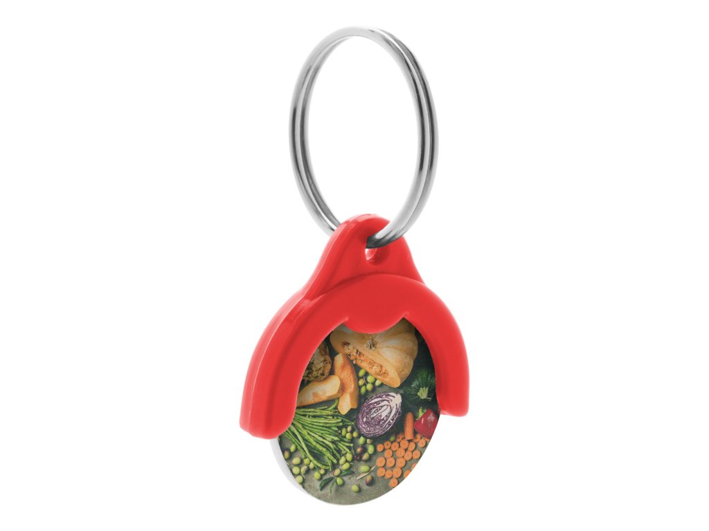 Plastový přívěšek na klíče s plnobarevným potiskem žetonu do vozíku. Cena zahrnuje UV LED tisk na 1 straně mince, nezahrnuje tiskovou přípravu. Min. mn.: 500 ks.