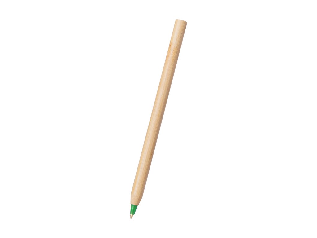 Bambusové kuličkové pero s barevnou špičkou a modrou náplní.