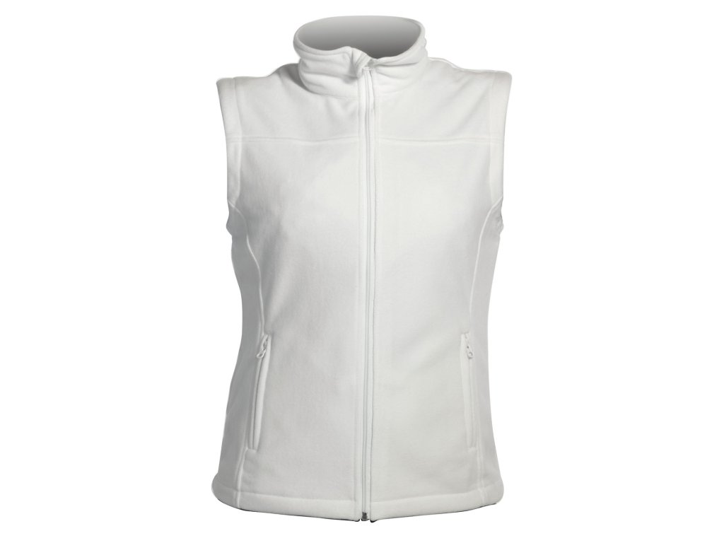 dámská vesta se stojáčkem; přední zip je krytý spodní légou; 2 praktické boční kapsy na zip a gravírování; vhodná pro vyšití nebo potisk.