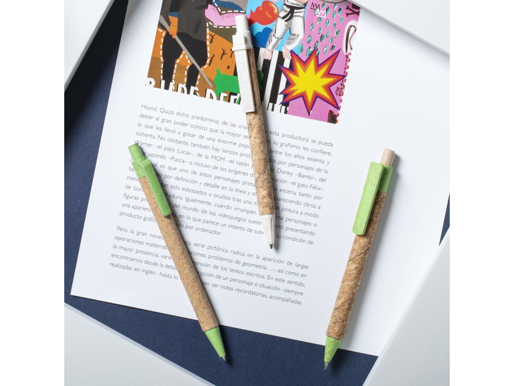 Kuličkové pero z přírodního korku v plastu z ekologické pšeničné slámy. S modrou náplní.