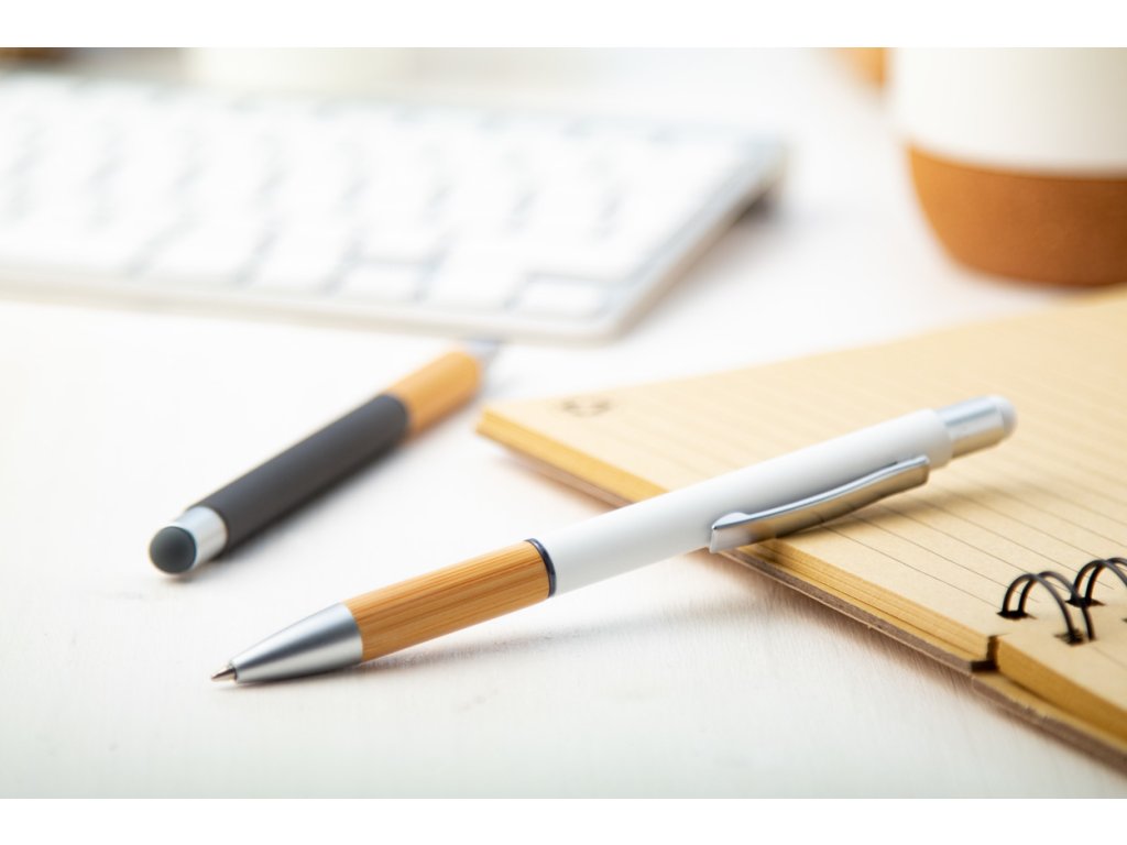Hliníkové kuličkové a dotykové pero s bambusovým uchopením a matným povrchem. S modrou náplní. ...
