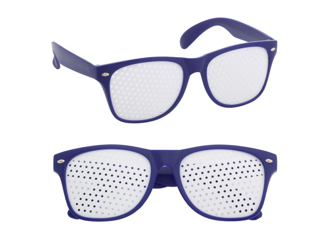 Plastové brýle na párty se síťovanými čočkami a matným povrchem.